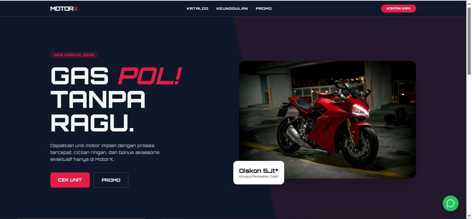 Landing page dealer motor premium dengan proses cepat.