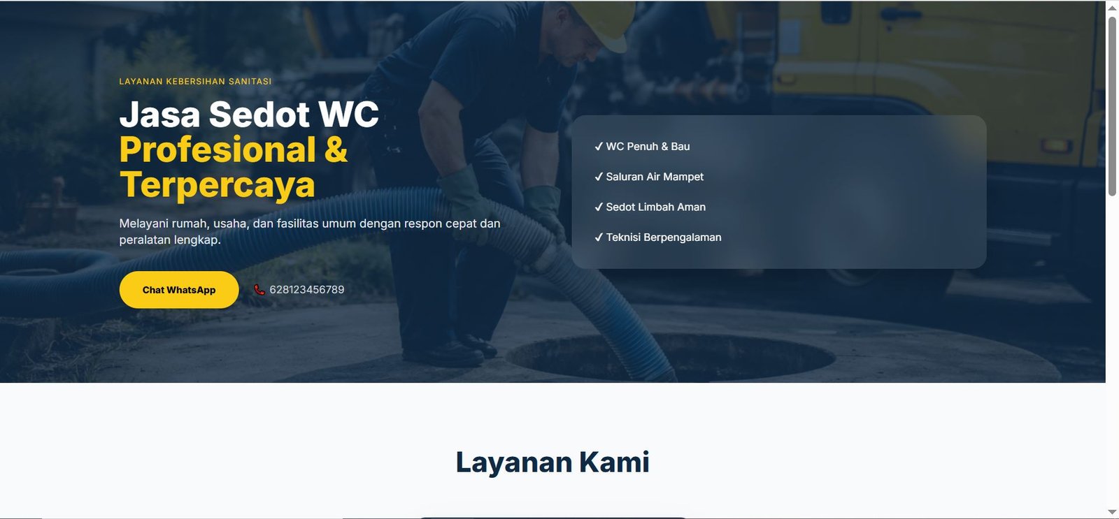 Landing page jasa lokal dengan fokus konversi & kecepatan.
