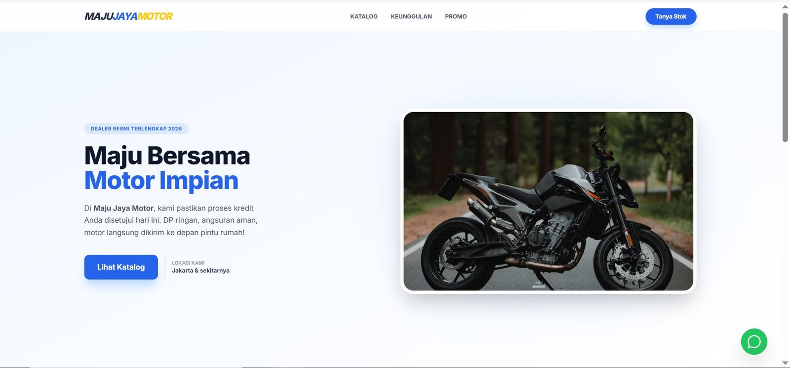 Landing page dealer motor premium dengan proses cepat.